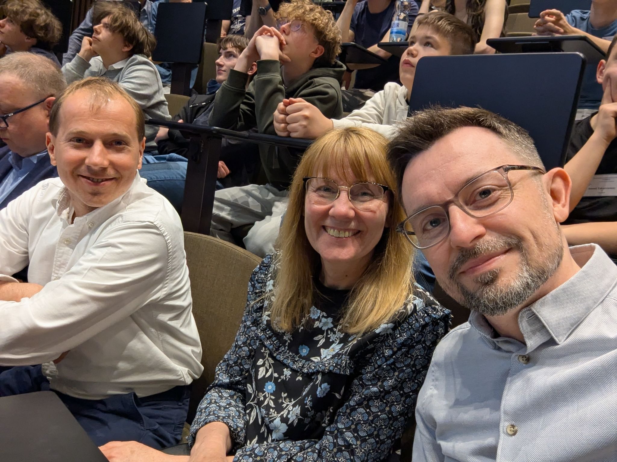 Podczas oficjalnego zakończenia OIJ (19.04.2026) nie mogło też zabraknąć twórców InstaKodu i InstaLogika – Ewy, Andrzeja i Tomka, którzy mieli okazję osobiście pogratulować uczniom ich osiągnięć i wspólnie świętować ten sukces.